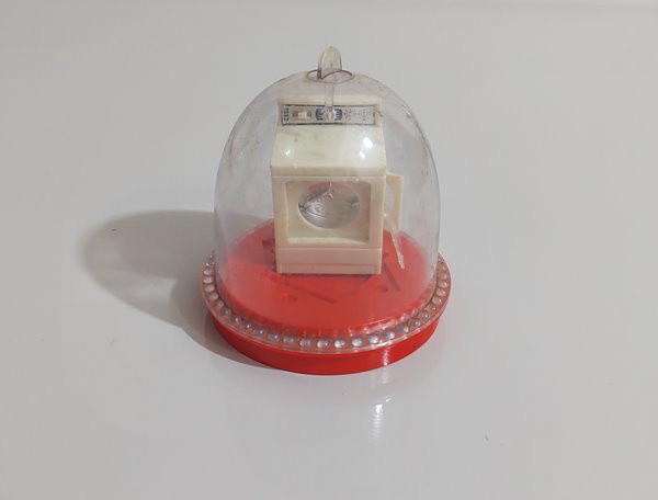 • Glasslite - Brinquedo Coleção Kit Kasinha, miniatura movida a corda em formato de máquina de lavar acomodado em caixinha de acrílico original. Apresenta bom estado de conservação.