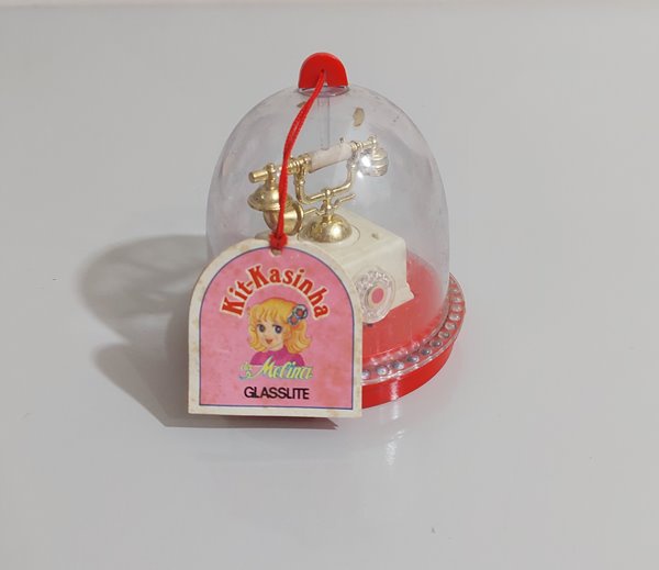• Glasslite - Brinquedo Coleção Kit Kasinha, miniatura movida a corda em formato de toca discos, acomodado em caixinha de acrílico original. Apresenta bom estado de conservação.