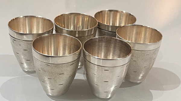 • CONJUNTO DE SEIS CÁLICES RUSSOS ESPESSURADOS A PRATA, SHOT VODKA. PERFEITOS