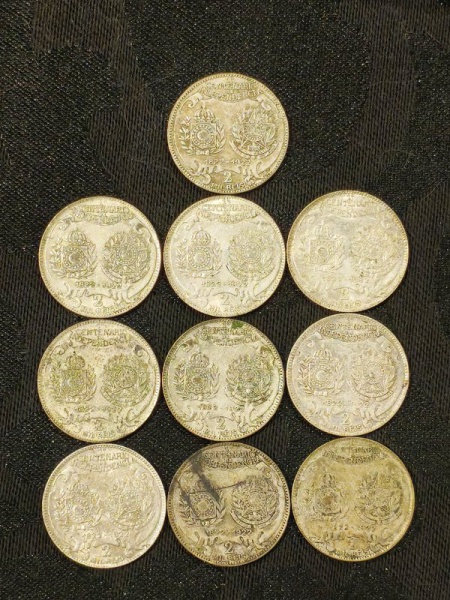 • PRATA - LOTE 10 MOEDAS 2000 REIS - ANO 1922.MOEDAS BEM CONSERVADAS, PORÉM PODEM APRESENTAR PÁTINA NATURAL DO TEMPO, E EVENTUAIS MARCAS DE MANUSEIO HUMANO. TRATA-SE DE MODEDAS AUTÊNTICAS.TODOS OS ITENS CONSTANTES NESSE LEILÃO, SÃO VENDIDOS COMO DESCRITOS E MOSTRADOS NAS FOTOS. SE AINDA HOUVER DÚVIDAS, ESCLARECER ANTES DO LEILÃO.
