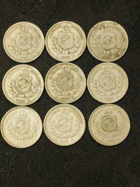 • LOTE DE MOEDAS BRASIL 100 REIS - SEQUENCIA DE ANOS 1881 A 1889MOEDAS BEM CONSERVADAS, PORÉM PODEM APRESENTAR PÁTINA NATURAL DO TEMPO, E EVENTUAIS MARCAS DE MANUSEIO HUMANO. TRATA-SE DE MODEDAS AUTÊNTICAS.TODOS OS ITENS CONSTANTES NESSE LEILÃO, SÃO VENDIDOS COMO DESCRITOS E MOSTRADOS NAS FOTOS. SE AINDA HOUVER DÚVIDAS, ESCLARECER ANTES DO LEILÃO.