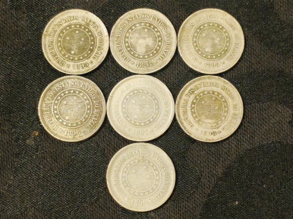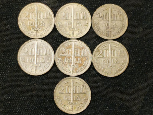 • PRATA - LOTE 7 MOEDAS 2000 REIS - ANO 1935. MOEDAS BEM CONSERVADAS, PORÉM PODEM APRESENTAR PÁTINA NATURAL DO TEMPO, E EVENTUAIS MARCAS DE MANUSEIO HUMANO. TRATA-SE DE MODEDAS AUTÊNTICAS.TODOS OS ITENS CONSTANTES NESSE LEILÃO, SÃO VENDIDOS COMO DESCRITOS E MOSTRADOS NAS FOTOS. SE AINDA HOUVER DÚVIDAS, ESCLARECER ANTES DO LEILÃO.