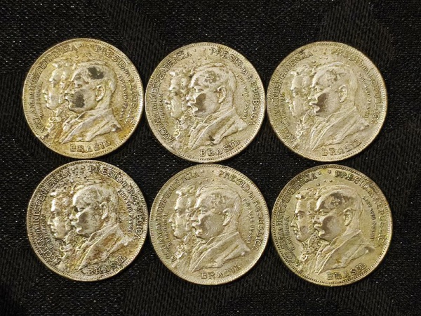 • PRATA - LOTE 6 MOEDAS 2000 REIS - ANO 1922. MOEDAS BEM CONSERVADAS, PORÉM PODEM APRESENTAR PÁTINA NATURAL DO TEMPO, E EVENTUAIS MARCAS DE MANUSEIO HUMANO. TRATA-SE DE MODEDAS AUTÊNTICAS.TODOS OS ITENS CONSTANTES NESSE LEILÃO, SÃO VENDIDOS COMO DESCRITOS E MOSTRADOS NAS FOTOS. SE AINDA HOUVER DÚVIDAS, ESCLARECER ANTES DO LEILÃO.