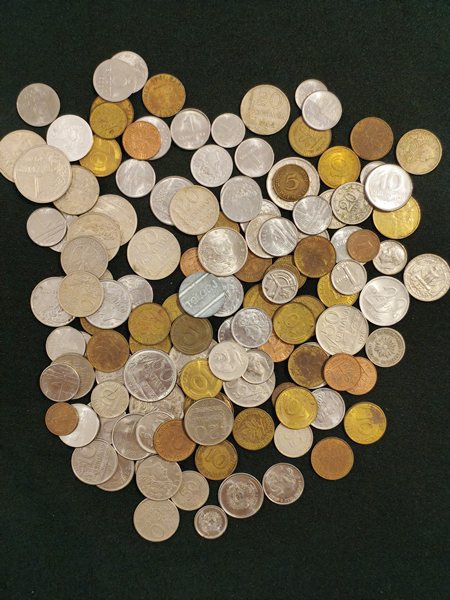 • LOTE DE MOEDAS DIVERSAS,  APROXIMADAMENTE 550GR.MOEDAS EM BOM ESTADO, PORÉM COM PÁTINA E MARCAS DO TEMPO.