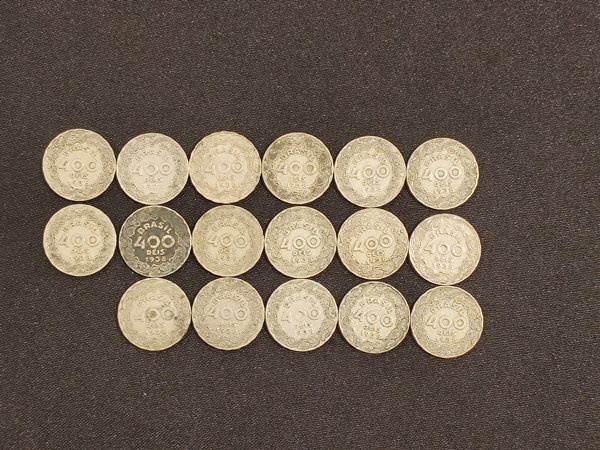 • LOTE COM 17 MOEDAS DE 400 REIS - GETÚLIO VARGAS ANO DE 1938.MOEDAS BEM CONSERVADAS, PORÉM APRESENTAM PÁTINA DO TEMPO, VENDIDAS NO ESTADO DESCRITO. SE AINDA HOUVER DÚVIDAS, ESCLARECER ANTES DA DO LEILÃO.