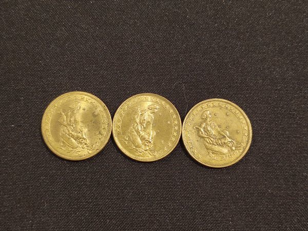 • LOTE 3 MOEDAS DE 1000 REIS ALUMINIO-BRONZE, ANO 1927MOEDAS BEM CONSERVADAS, PORÉM APRESENTAM PÁTINA DO TEMPO, VENDIDAS NO ESTADO DESCRITO. SE AINDA HOUVER DÚVIDAS, ESCLARECER ANTES DA DO LEILÃO.