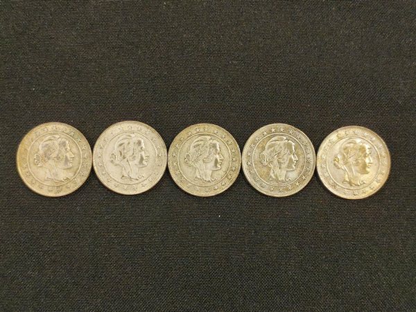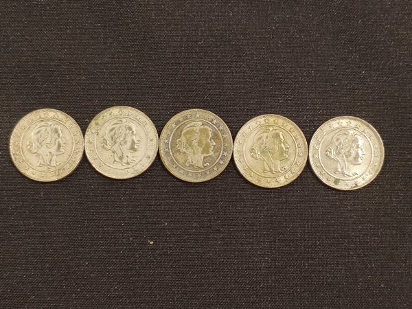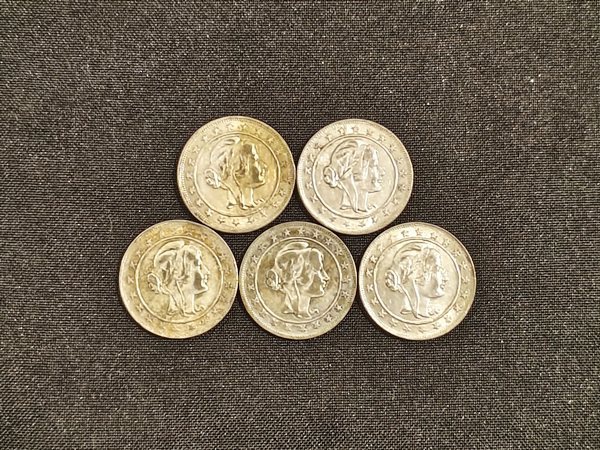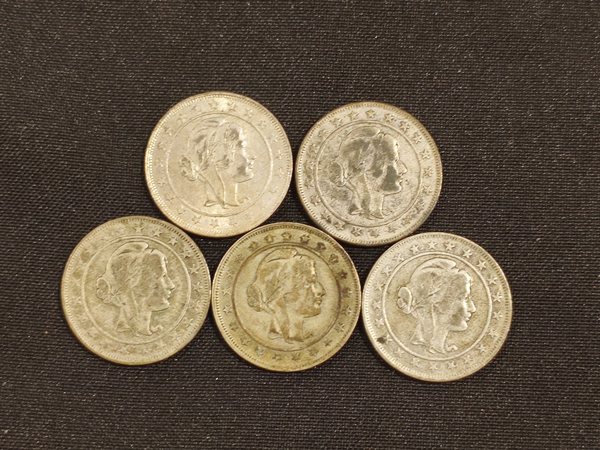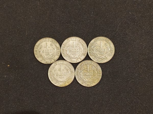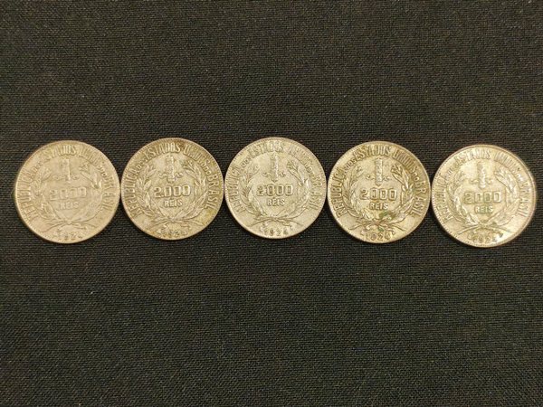 • PRATA - LOTE DE 5 MOEDAS 2000 REIS - SÉRIE MOCINHA ANO 1924.MOEDAS MUITO BEM CONSERVADAS, PORÉM APRESENTAM PÁTINA DO TEMPO, VENDIDAS NO ESTADO DESCRITO. SE AINDA HOUVER DÚVIDAS, ESCLARECER ANTES DA DO LEILÃO.